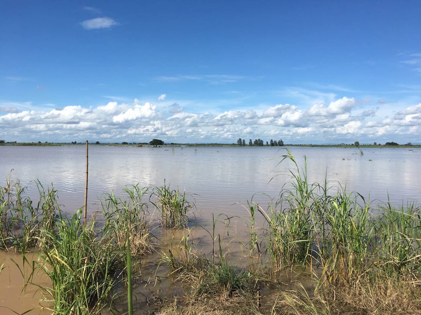 สาเหตุที่การเก็บเกี่ยวล่าช้ากว่าแผน จากเดิมที่กำหนดให้เสร็จสิ้นประมาณกลางเดือนสิงหาคม แต่เนื่องจากในช่วงเดือนเมษายน- พฤษภาคม อากาศมีอุณหภูมิสูงมากกว่า 40 องศาเซลเซียส ชาวนาเห็นว่า จะทำให้การงอกและการเจริญเติบโตของข้าวไม่ดี จึงเริ่มทำนาล่าออกไป อีกทั้งเมื่อข้าวเริ่มออกรวงเจอกับอากาศร้อนทำให้ผลผลิตต่ำ เกษตรกรบางส่วนต้องปลูกใหม่ซึ่งข้าวที่ปลูกล่าและปลูกใหม่นี้ยังไม่ได้เก็บเกี่ยว