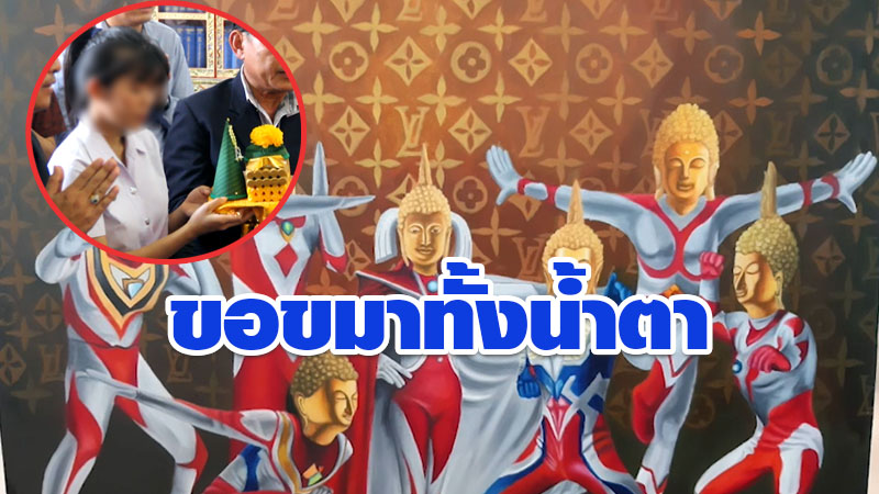 นักศึกษาหญิงเจ้าของผลงานภาพวาด เปิดเผยทั้งน้ำตาว่า การวาดภาพดังกล่าวไม่ได้มีเจตนาที่จะลบหลู่พระพุทธศาสนาแต่อย่างใด เพียงแต่ต้องการสื่อให้เห็นว่า พระพุทธเจ้าเป็นฮีโร่เหมือนอุลตร้าแมน ที่สามารถอดทนต่อสิ่งเร้ารอบด้าน และช่วยขจัดปัดเป่าสิ่งชั่วร้ายให้มนุษย์ ทำให้โลกมนุษย์สงบสุขได้ ทั้งนี้ ถือเป็นความรู้เท่าไม่ถึงการณ์ของตน จึงกราบขอโทษ และขออภัยทุกคนทุกฝ่ายมา ณ ที่นี้ด้วย