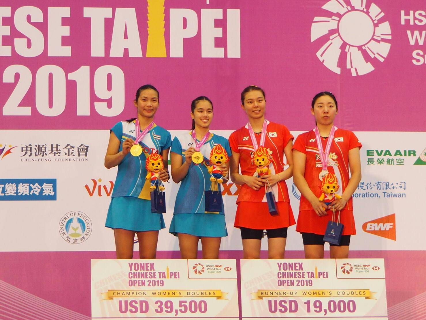 ไทเป 8 ก.ย. – “กิ๊ฟ จงกลพรรณ” และ “วิว รวินดา” แบดหญิงคู่มือ 4 ของรายการ โชว์ฟอร์มยอดเยี่ยม ล้างแค้นเกาหลีใต้ คว้าแชมป์ “โยเน็กซ์ ไชนีส ไทเป โอเพ่น 2019″