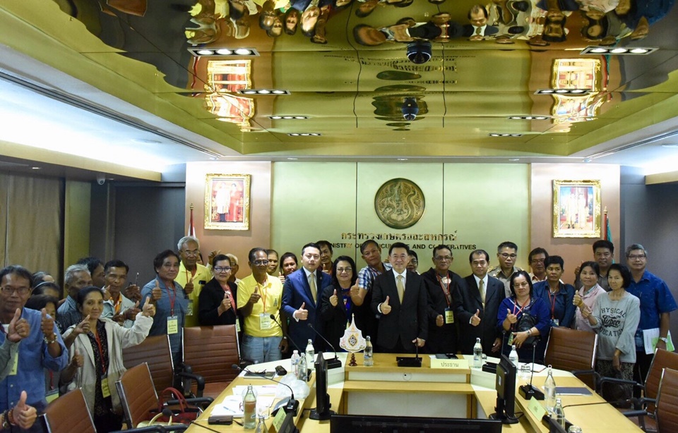 นายธนา ชีรวินิจ เลขานุการรัฐมนตรีว่าการกระทรวงเกษตรและสหกรณ์ กล่าวว่า นายเฉลิมชัย ศรีอ่อน รัฐมนตรีว่าการกระทรวงเกษตรฯ มอบหมายให้ประชุมกับกลุ่มภาคีเครือข่ายเกษตรกร จากจังหวัดอุดรธานี กาฬสินธุ์ นครราชสีมา อ่างทอง จันทบุรี เพชรบุรี และอุทัยธานี ประมาณ 100 คน นำโดยนางสาวศศิรัศมิ์ พันธ์พลกลาง ซึ่งยื่นข้อเรียกร้อง 7 ข้อให้ช่วยเหลือเกี่ยวกับปัญหาหนี้สิน ได้แก่ ขอให้สหกรณ์การเกษตรเจ้าหนี้ที่ฟ้องลูกหนี้ ขอให้หยุดดำเนินคดีจนกว่ากองทุนฟื้นฟูและพัฒนาเกษตรกร (กฟก.) จะเข้ามาซื้อหนี้ ให้เป็นคนกลาง เพื่อให้ กฟก.ซื้อหนี้จากสหกรณ์การเกษตรไปบริหารจัดการ ให้จำหน่ายหนี้สูญตามกฎกระทรวงการคลังกำหนดกรณีคุณสมบัติเป็นไปตามกฎกระทรวงกำหนด