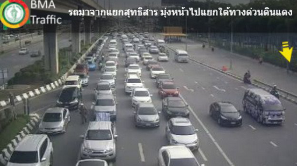 ถนนรัชดาภิเษก ขาเข้า จากแยกรัชดา-ลาดพร้าว เข้าแยกสุทธิสาร – แยกห้วยขวาง – แยกเทียมร่วมมิตร รถมาก ท้ายแถวสะสมอุโมงค์รัชโยธิน