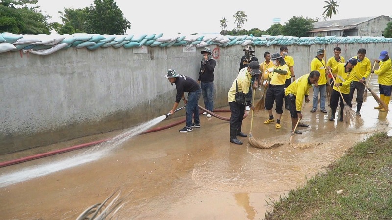 สุโขทัย 10 ก.ย.- ร่วมแรงร่วมใจ! สุโขทัยคืนความสะอาดทุกมุมเมือง หลังแม่น้ำยมล้นตลิ่งท่วมมาตั้งแต่ 3 ก.ย. กลับสู่ภาวะปกติแล้ว แต่ยังมีคราบดินโคลนเกาะตามท้องถนน