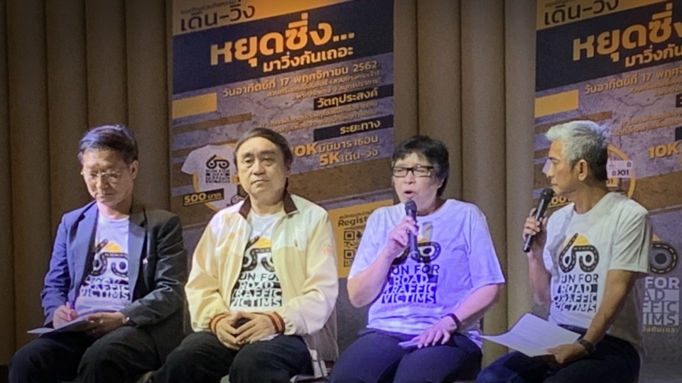 กลุ่มผู้เสียหายทางถนน มูลนิธิเพื่อผู้บริโภค มูลนิธิเมาไม่ขับ สำนักงานกองทุนสนับสนุนการสร้างเสริมสุขภาพ (สสส.) และภาคีเครือข่ายภาคประชาชน ที่ร่วมกันจัดกิจกรรม แถลงข่าวกิจกรรม “หยุดซิ่ง…มาวิ่งกันเถอะ” (Run for Road Traffic Victims) นางสาวสารี อ๋องสมหวัง เลขาธิการมูลนิธิเพื่อผู้บริโภค กล่าวว่า กิจกรรม หยุดซิ่ง…มาวิ่งกันเถอะ เกิดขึ้นเพราะผู้เสียหายจากอุบัติเหตุทางถนนในบ้านเรามีความรุนแรงติดอันดับโลก โดยในแต่ละปีประเทศมีผู้เสียชีวิตจากอุบัติเหตุทางถนนมากกว่า 2 หมื่นคน และอีก 4 หมื่นคนต้องเป็นผู้พิการรายใหม่ ทุกๆปีมีผู้ได้รับผลกระทบจากอุบัติเหตุกว่า 2 แสนคน ทั้งครอบครัวของผู้เสียชีวิตและผู้พิการ และผู้เสียหายเหล่านี้ ต้องผจญกับการต่อสู้คดี ช่วยตัวเอง แนวโน้มความรุนแรงลดลงน้อยมาก ทุกคนมีโอกาสเป็นเหยื่อ ปัญหาความปลอดภัยบนท้องถนนที่แก้ไขอย่างช้าๆ ทุกคนมีโอกาสเป็นเหยื่อ เป็นเรื่องที่ผู้บริโภค ประชาชนต้องมาช่วยกันทำงาน ทำให้การเยียวยาความเสียหายรวดเร็วขึ้น และหาทางเร่งรัดให้มีบริการขนส่งมวลชนที่มีคุณภาพรถและความปลอดภัยมากขึ้น เพื่อลดและหยุดเหยื่อรายใหม่ และร่วมกันผลักดันจัดตั้งกองทุนผู้เสียหายจากอุบัติเหตุทางถนนเพื่อให้ผู้เสียหายเป็นคนทำงานเรื่องโดยตรงนี้มากขึ้น