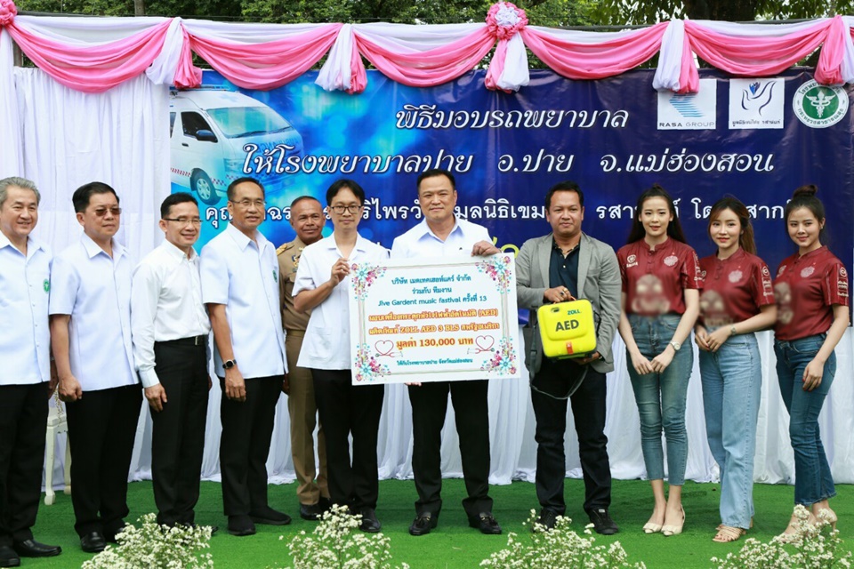 นอกจากนี้ บริษัทเอกชนยังได้มอบเครื่องกระตุกหัวใจไฟฟ้าหัวใจอัตโนมัติ (Automated External Defibrillator : AED) แก่ รพ.ปาย และโรงพยาบาลส่งเสริมสุขภาพตำบลในอำเภอปายทุกแห่ง แห่งละ1 เครื่อง รวม 12 เครื่อง เพื่อใช้เป็นอุปกรณ์ปฐมพยาบาลและช่วยในการฟื้นคืนชีพ .-สำนักข่าวไทย