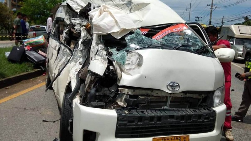 ส่วนรถตู้สภาพด้านหน้าเสียหายอย่างหนัก มีผู้โดยสารนั่งมา 11 ราย เสียชีวิตที่เกิดเหตุ 4 ราย บาดเจ็บ 8 ราย รวมทั้งคนขับ ทั้งหมดถูกนำส่งโรงพยาบาลวัฒนานคร ล่าสุดมีผู้เสียชีวิตเพิ่มรายที่ 5 เป็นเด็กชายยังไม่ทราบอายุ