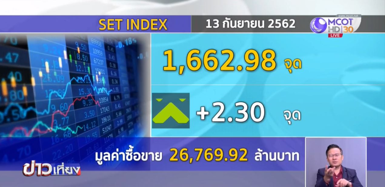 กทม. 13 ก.ย. -หุ้นไทยแนวโน้มดัชนีเช้านี้ปรับขึ้นตามภูมิภาค หลัง ECB ผ่อนคลายนโยบายการเงินตามคาด และสหรัฐจะทำข้อตกลงการค้าชั่วคราวกับจีน ดัชนีหุ้นไทยภาคเช้า +2.30 จุด ปิดที่ 1,662.98 จุด มูลค่าซื้อขาย 26,769.92 ล้านบาท