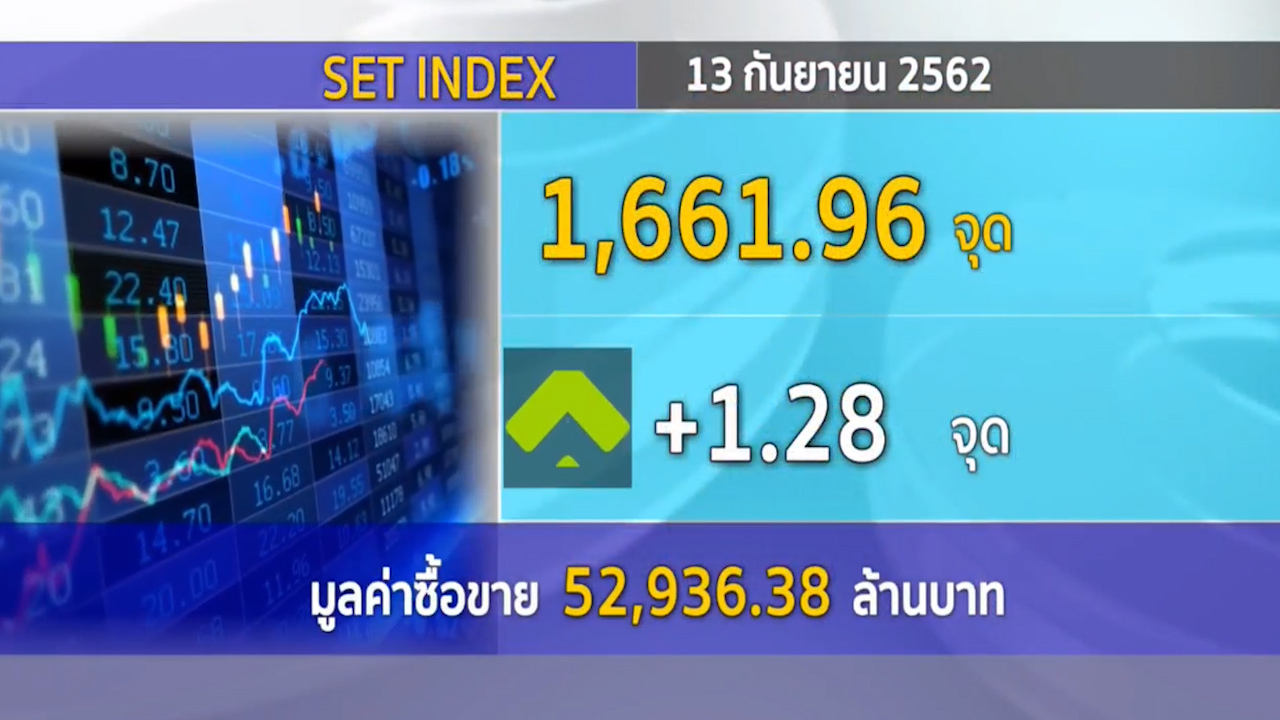 กรุงเทพฯ 13 ก.ย. – ตลาดหลักทรัพย์ปิดปิดบวก 1.28 จุด ที่ระดับ 1,661.96 จุด มูลค่าการซื้อขาย 52,936.38 ล้านบาท การซื้อขายหุ้นวันนี้ ดัชนีเคลื่อนไหวในแดนบวกเป็นส่วนใหญ่.-สำนักข่าวไทย