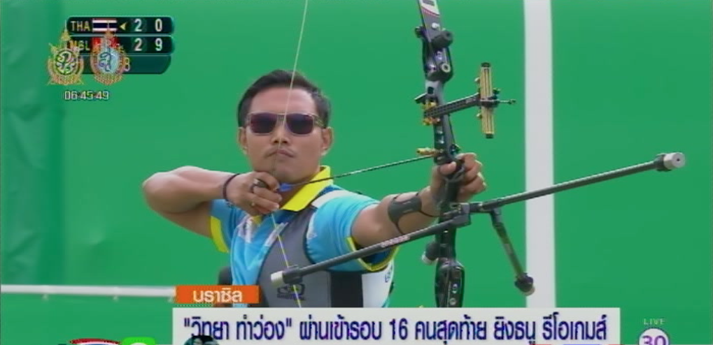 บราซิล 9 ส.ค.- วิทยา ทำว่อง โรบินฮูดหนุ่มทีมชาติไทย ทำผลงานได้อย่างยอดเยี่ยม ผ่านเข้ารอบ 16 คนสุดท้าย ยิงธนูประเภทโค้งกลับ โอลิมปิกเกมส์ 2016