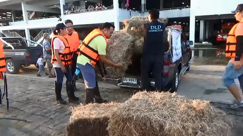 นายสัตวแพทย์อภิชาติ ภะวัง หัวหน้ากลุ่มพัฒนาคุณภาพสินค้าปศุสัตว์ สำนักงานปศุสัตว์จังหวัดอุบลราชธานี เปิดเผยถึงการช่วยเหลือสัตว์เลี้ยงของเกษตรกรประสบปัญหาจากน้ำท่วมสูงว่า ทางปศุสัตว์จังหวัดได้ลำเลียงหญ้าแห้งไปช่วยเหลือโคกระบืออย่างต่อเนื่อง รวมถึงอาหารเลี้ยงสุนัขจรจัดเกือบ 100 ตัว ที่ติดอยู่พื้นที่กลายเป็นเกาะกลางน้ำบ้านท่ากกแห่ ต.แจระแม อ.เมือง ส่วนการทำหมันสุนัขจรจัดในขณะนี้ ยังไม่สามารถดำเนินการได้ เนื่องจากน้ำท่วมล้อมรอบพื้นที่ หากทำหมันช่วงนี้จะมีบาดแผล หากแผลถูกน้ำก็มีโอกาสติดเชื้อและทำให้สุนัขตายได้ จึงต้องรอให้สถานการณ์กลับสู่ภาวะปกติ ซึ่งช่วงนี้จะมีสัตวแพทย์หมุนเวียนมาตรวจสุขภาพสัตว์เลี้ยงของเกษตรกรไปจนกว่าน้ำลดลง เพราะเป็นจุดที่สำนักงานปศุสัตว์อำเภอกำหนดให้เป็นจุดอพยพสัตว์มาเลี้ยงไว้