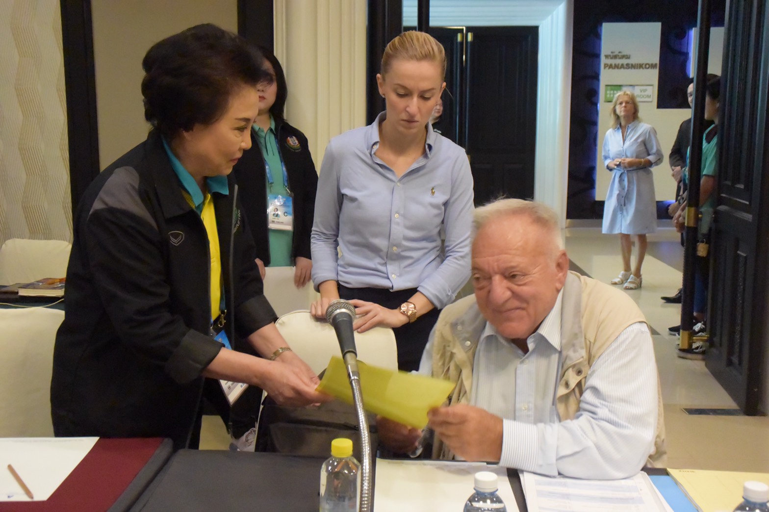 โดยก่อนเริ่มการประชุม คุณบุษบา ยอดบางเตย นายกสมาคมกีฬายกน้ำหนักสมัครเล่นแห่งประเทศไทย ได้ยื่นหนังสือต่อ นายทามัส อาจัน ประธานสหพันธ์ฯ เพื่อขอให้นักกีฬาไทยคนอื่นๆ สามารถเข้าร่วมแข่งขัน โดยมีใจความโดยรวมว่า แม้ไทยจะประกาศงดส่งนักกีฬาเข้าร่วมการแข่งขันของสหพันธ์ตั้งแต่เดือนมีนาคม 2562 เป็นต้นมา แต่ที่ผ่านมาทางสมาคมกีฬายกน้ำหนักของไทย ได้ทำตามกระบวนการและขั้นตอนต่างๆ อย่างถูกต้องจึงขอความเป็นธรรมจากคณะกรรมการบริหารพิจารณาว่า นักกีฬายุวชนและเยาวชนของไทยที่ไม่ได้มีส่วนเกี่ยวข้องกับสารกระตุ้น ควรมีสิทธิ์ได้ร่วมแข่งขัน