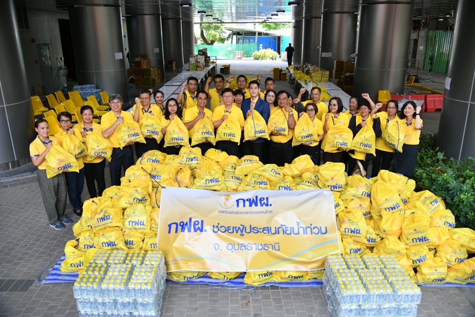 นายวิบูลย์ ฤกษ์ศิระทัย ผู้ว่าการ การไฟฟ้าฝ่ายผลิตแห่งประเทศไทย (กฟผ.) พร้อมด้วยผู้บริหาร พนักงาน และจิตอาสา กฟผ. ร่วมแรงร่วมใจแพ็คถุงยังชีพ กฟผ. โดยบรรจุเครื่องอุปโภคบริโภคที่จำเป็นสำหรับผู้ประสบอุทกภัยเพิ่มเติม รวม 1,428 ชุด และน้ำดื่มอีก 4,800 ขวด สำหรับนำไปแจกจ่ายและช่วยเหลือผู้ประสบภัยในพื้นที่ จ.อุบลราชธานี โดยผู้ว่าการ กฟผ. และพนักงาน ร่วมกันปล่อยขบวนรถที่บรรทุกถุงยังชีพ กฟผ. จากสำนักงานใหญ่ กฟผ. อ.บางกรวย จ.นนทบุรี เพื่อเดินทางไปส่งมอบที่เขื่อนสิรินธร จ.อุบลราชธานี โดยคาดว่าจะเดินทางไปถึงภายในวันนี้และจะสามารถนำถุงยังชีพ กฟผ. ไปแจกจ่ายเพื่อช่วยเหลือประชาชนในพื้นที่ได้โดยเร็วที่สุดในวันพรุ่งนี้