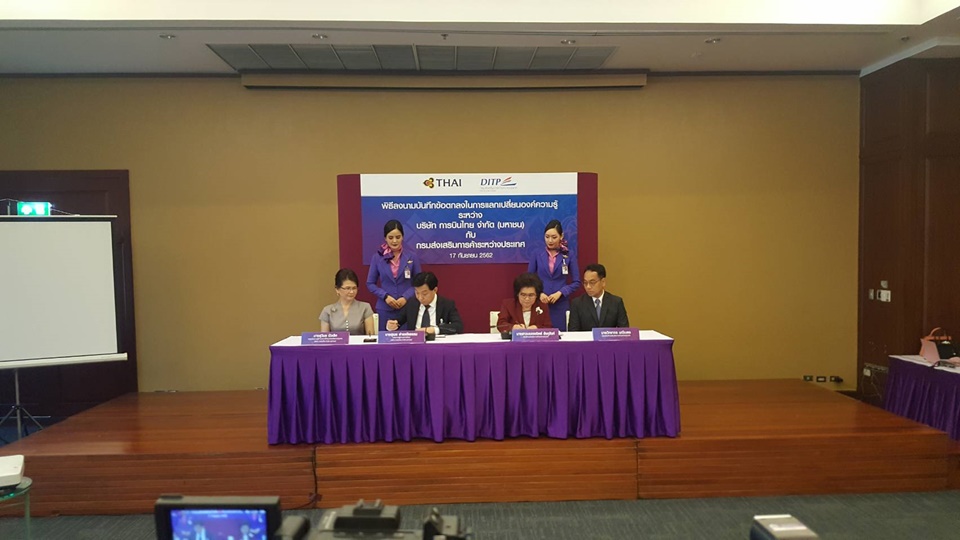 กรุงเทพฯ 17 ก.ย. – การบินไทยลงนามร่วมมือกรมส่งเสริมการค้าระหว่างประเทศ ดันธุรกิจอี-คอมเมิร์ซ หนุนสินค้าโอทอปไทยขายผ่านแอปฯ