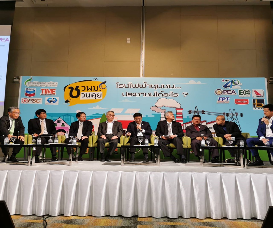 ในงานเสวนาชมรมวิทยาการพลังงานรุ่นใหม่ (ชวพม.) ชวนคุยโรงไฟฟ้าชุมชนประชาชนได้อะไร มีข้อเสนอทั้งจากหน่วยงานรัฐ เอกชน และวิสาหกิจชุมชน โดยเห็นด้วยกับนโยบายโรงไฟฟ้าชุมชนของกระทรวงพลังงาน มีข้อเสนอทั้งรูปแบบเอกชน-ชุมชน และหน่วยงานรัฐ ร่วมทุนสร้างโรงไฟฟ้าขนาด 1-3 เมกะวัตต์ โดยเอกชนร่วมทุนในสัดส่วนร้อยละ 0-70 ทุกโมเดลต้องมีเงินอุดหนุนค่าไฟฟ้าในรูปแบบ FIT อัตรา 4.24-5.34 บาท/หน่วย ซึ่งจะส่งผลให้ค่าไฟฟ้าประชาชนแพงขึ้น 7-20 สตางค์ต่อหน่วย ทั้งนี้ ภาคเอกชนจะต้องให้ผลตอบแทนแก่ชุมชนที่ดี โดยรูปแบบเช่นนี้จะทำให้ชุมชนมีรายได้เพิ่ม และเป็นการกระจายการผลิตไฟฟ้า โดยเชื้อเพลิงขึ้นกับวัตถุดิบแต่ละพื้นที่ มีเงินลงทุน 100-300 ล้านบาทต่อโรง กำลังผลิตรวม 500-1,000 เมกะวัตต์ ซึ่งทาง ชวพม.ได้รวบรวมความคิดเห็นเสนอต่อนายสนธิรัตน์ สนธิจิรวงศ์ รัฐมนตรีว่าการกระทรวงพลังงาน ซึ่งนายสนธิรัตน์ จะสรุปโมเดลภายใน 2-3 เดือนนี้
