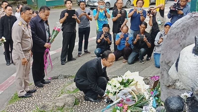 นายศุภชัย เอี่ยมสุวรรณ ผู้ว่าราชการจังหวัดเชียงใหม่ และนายเหริน ยี่เซิง กงสุลใหญ่ สาธารณรัฐประชาชนจีน ประจำเชียงใหม่ เดินทางมายังสวนสัตว์เชียงใหม่และวางช่องดอกไม้บริเวณรูปปั้นครอบครัวแพนด้าด้านหน้าส่วนจัดแสดงแพนด้า เมื่อเย็นวันนี้ (18 ก.ย.) เพื่อไว้อาลัยให้กับแพนด้า “ช่วงช่วง” เพศผู้ ทูตสันถวไมตรีระหว่างจีนและไทย ซึ่งช่วงช่วงจากไปกะทันหันเมื่อวันที่ 16 ก.ย.2562