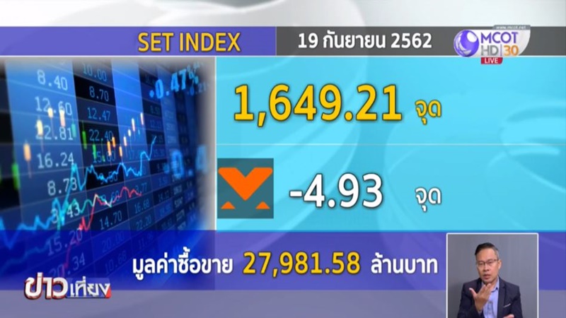 ตลาดหุ้นไทยช่วงเที่ยงปิดลดลง 4.93 จุด หลังเฟดลดดอกเบี้ยตามคาด