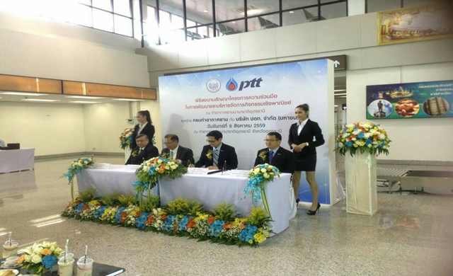 วันนี้ (8 ส.ค. 59) นายจุฬา สุขมานพ อธิบดีกรมท่าอากาศยาน และนายอรรถพล ฤกษ์พิบูลย์ รองกรรมการผู้จัดการใหญ่ บริษัท ปตท. จำกัด (มหาชน) ร่วมลงนามในสัญญาโครงการความร่วมมือพัฒนาและบริหารจัดการกิจกรรมเชิงพาณิชย์ท่าอากาศยานนานาชาติอุดรธานี นายอรรถพล เปิดเผยว่า ปตท.มีความยินดีอย่างยิ่งและพร้อมที่จะใช้ความรู้ ประสบการณ์ และความชำนาญที่ได้ถูกพัฒนามาอย่างต่อเนื่องมาให้บริการอย่างครบวงจรให้กับผู้เดินทางชาวไทยและต่างชาติในท่าอากาศยานนานาชาติอุดรธานี โดยจะพัฒนาและบริหารจัดการพื้นที่อาคารผู้โดยสารส่วนต่อขยายของท่าอากาศยานนานาชาติอุดรธานี ประกอบด้วย บริหารจัดการพื้นที่เชิงพาณิชย์ในอาคารผู้โดยสารสำหรับเป็นร้านจำหน่ายสินค้าและของที่ระลึก ร้านอาหารและเครื่องดื่ม ร้านเพื่อสุขภาพ ธนาคาร และนิทรรศการส่งเสริมกิจกรรมของท้องถิ่นในจังหวัดฯ บริหารจัดการพื้นร้านค้าสวัสดิการ โดยจะเป็นร้านที่เป็นธุรกิจของ ปตท. ได้แก่ คาเฟ่ อเมซอน และTexas Chicken รวมถึงบริหารจัดการพื้นที่ลานจอดรถภายนอกอาคารฯ โดยกรมท่าอากาศยาน ซึ่งคาดว่าจะเริ่มให้บริการได้ต้นปี 2560