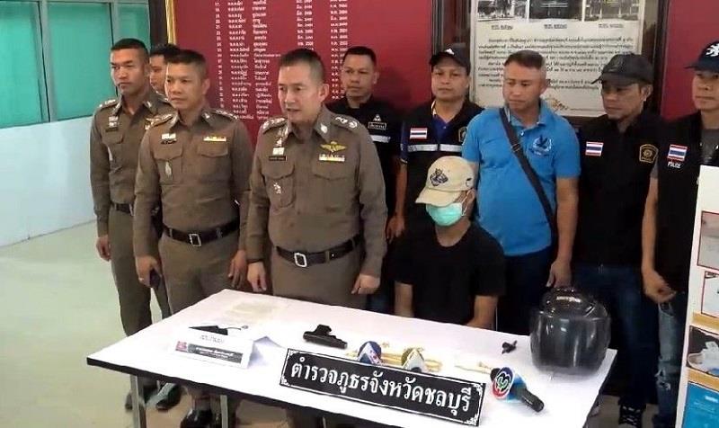ชลบุรี 20 ก.ย.- รวบแล้ว ! ผู้ต้องหาใช้ปืนปลอมจี้ร้านทองย่านบ้านบึง จ.ชลบุรี ชิงทองหนัก 15 บาท หลบหนีเมื่อ 18 ก.ย. รับสารภาพหาเงินใช้หนี้พนันออนไลน์ ตำรวจคุมตัวทำแผนดำเนินคดี