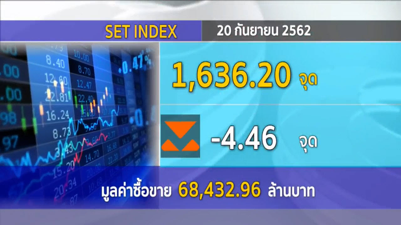 กรุงเทพฯ 20 ก.ย. – ตลาดหลักทรัพย์ปิดวันนี้ที่ระดับ 1,636.20 จุด ลดลง 4.46 จุด (-0.27%) มูลค่าการซื้อขาย 68,432.96 ล้านบาท