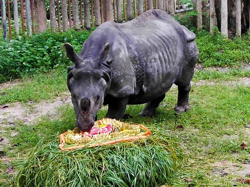 เชียงใหม่ 22 ก.ย.- วันแรดโลก 22 กันยายน สวนสัตว์เชียงใหม่จัดพิเศษขันโตกชุดใหญ่ฉลอง “เจ้ากาลิ” แรดดำอินเดีย สัตว์ป่ายาก อยู่มาถึงวัย 34 ปี แข็งแรงสมบูรณ์ดี มีนอเดียว ผิวหนังย่นพับคล้ายเสื้อเกราะนักรบโบราณ