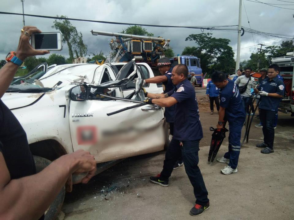 เมื่อเวลา 10.00 น. (23 ก.ย.) ร.ต.อ.เรวัตร อับดิน พนักงานสอบสวน สภ.บางน้ำเปรี้ยว จ.ฉะเชิงเทรา ประสานกู้ภัยฉะเชิงเทราเร่งช่วยเหลือผู้บาดเจ็บติดอยู่ในรถกระบะ สีขาว หลังเกิดเหตุรถบรรทุกยกดัมป์เทหินคลุกอยู่บริเวณเชิงสะพานคลอง 19 ถนนฉะเชิงเทรา-องครักษ์ ต.สิงโตทอง อ.บางน้ำเปรี้ยว ซึ่งเป็นเส้นทางอยู่ระหว่างการปรับปรุงก่อสร้าง ปรากฏว่าตัวดัมป์ไปเกี่ยวกับสายสื่อสารและดึงเสาไฟฟ้าล้มทับรถกระบะ 4 ประตู สีขาว หลังคายุบมีผู้เสียชีวิต 1 ราย เป็นชาย อายุ 65 ปี นั่งอยู่เบาะหลัง ส่วนคนขับและผู้โดยสารอีกคนนั่งอยู่เบาะหน้าบาดเจ็บถูกนำส่งโรงพยาบาลบางน้ำเปรี้ยว