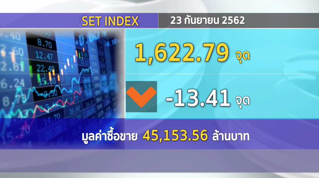 กรุงเทพฯ 23 ก.ย. – ตลาดหลักทรัพย์ฯ ปิดวันนี้ (23 ก.ย.) ที่ระดับ 1,622.79 จุด ลดลง 13.41 จุด หรือ 0.82% มูลค่าการซื้อขาย 45,153.56 ล้านบาท ดัชนีเคลื่อนไหวแดนลบเป็นส่วนใหญ่ ทำระดับสูงสุด 1,636.16 จุด และต่ำสุด 1,620.77 จุด .-สำนักข่าวไทย