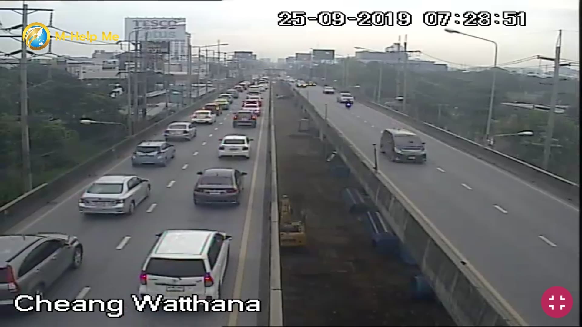 ถนนแจ้งวัฒนะ ขาเข้า ผ่านหน้า รพ.มงกุฏวัฒนะ รถเคลื่อนตัวได้ช้า ท้ายแถวสะสมอยู่ที่แยกเลี่ยงเมืองปากเกร็ด