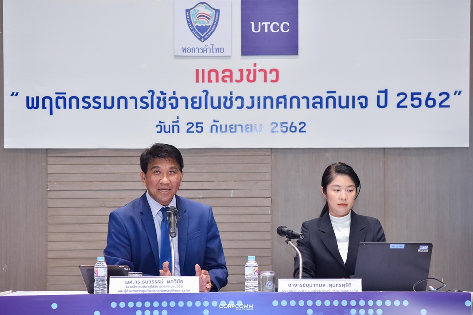 นายธนวรรธน์ พลวิชัย ผู้อำนวยการ ศูนย์พยากรณ์เศรษฐกิจและธุรกิจ มหาวิทยาลัยหอการค้าไทย เปิดเผยผลการสำรวจพฤติกรรมการใช้จ่ายในช่วงเทศกาลกินเจปี 2562 ตั้งแต่วันที่ 29 กันยายน ถึง 7 ตุลาคม 2562 พบว่า ปีนี้ประชาชนร้อยละ 38.4 ตั้งใจจะกินเจ เพิ่มขึ้นจากปีที่แล้ว เนื่องจากตั้งใจที่จะทำบุญโดยลดการกินเนื้อสัตว์ และเริ่มเป็นเทศกาลที่ได้รับความนิยมของคนที่รักสุขภาพมากขึ้น แต่ส่วนใหญ่จะไม่กินตลอดเทศกาล จะเลือกกินเพียงบางมื้อเท่านั้น เพราะแม้จะมีการวางแผนใช้จ่ายเท่าเดิม แต่ราคาสินค้าแพงขึ้น ทำให้ค่าใช้จ่ายโดยรวมทั้งค่าอาหารเจที่หันมาซื้ออาหารปรุงสำเร็จและสั่งออนไลน์มากขึ้น รวมถึงค่าทำบุญและค่าเดินทางไปทำบุญเฉลี่ยคนละ 11,000 บาท สูงกว่าปีที่แล้วที่เฉลี่ยคนละ 10,936 บาท ส่งผลให้เม็ดเงินสะพัดในช่วงเทศกาลกินเจปีนี้อยู่ที่ 46,549 ล้านบาท แม้จะขยายตัวร้อยละ 1.3 แต่เป็นอัตราการขยายตัวต่ำสุดในรอบ 12 ปี นับตั้งแต่ทำการสำรวจมา