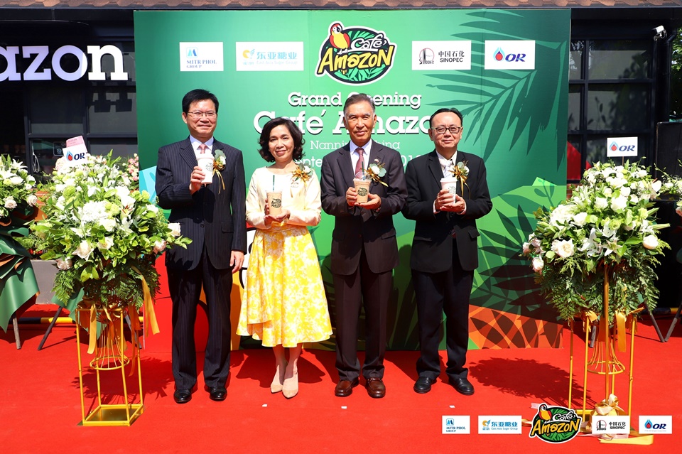 นายชัยรัตน์ พรทิพย์วรเวทย์ กงสุลใหญ่ ณ นครหนานหนิง พร้อมด้วยนางสาวจิราพร ขาวสวัสดิ์ ประธานเจ้าหน้าที่บริหารและกรรมการผู้จัดการใหญ่ บริษัท ปตท. น้ำมันและการค้าปลีก จำกัด (มหาชน) หรือ โออาร์ นายอิสระ ว่องกุศลกิจ ประธานกรรมการกลุ่มมิตรผล และนายหลี่ จี้ ฉง (Li Jicong) กรรมการผู้จัดการบริษัท ซิโนเปค เซลส์ สาขา กว่างซี (Sinopec Sales Guangxi Branch Company) ร่วมพิธีเปิดร้าน คาเฟ่ อเมซอน สาขาจู๋ซี (Zhuxi) ซึ่งเป็นสาขาแรกของประเทศจีน ในสถานีบริการน้ำมัน ซิโนเปค เมืองหนานหนิง (Nanning) มณฑลกว่างซี (Guangxi)