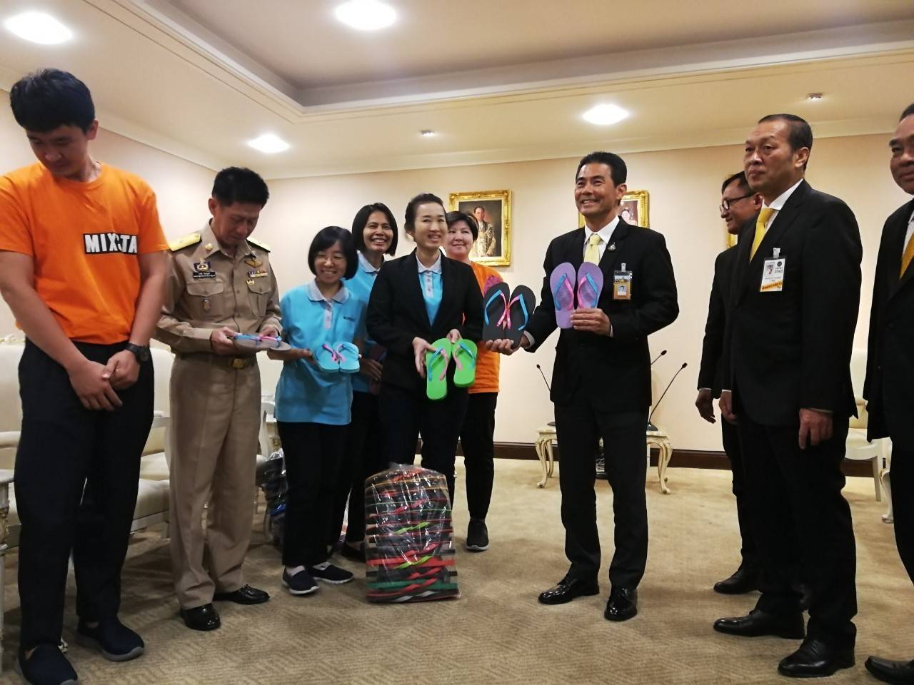 วันนี้ (27 ก.ย.62) ตัวแทนจาก บริษัท กรีน ฟุตแวร์ ผู้ผลิตรองเท้ายางพารา ยี่ห้อ มิกซ์สตาร์ ฟุตแวร์ เข้าพบ นายเทวัญ ลิปตพัลลภ รัฐมนตรีประจำสำนักนายกรัฐมนตรี เพื่อร่วมบริจาครองเท้ายางพาราแด่ผู้ประสบอุทกภัย จ.อุบลราชธานี จำนวน 50,000 คู่ ราคาคู่ละ 100 บาท รวมเป็นมูลค่า 5,000,000 บาท ทั้งนี้ ทาง บริษัท กรีน ฟุตแวร์ ได้ดำเนินการส่ง รองเท้ายางพาราไปทางไปยังพี่น้องประชาชน จ.อุบลราชธานี เป็นที่เรียบร้อย โดยทางส่วนที่เกี่ยวข้องจะดำเนินการแจกจ่ายแต่ละพื้นที่อีกครั้ง