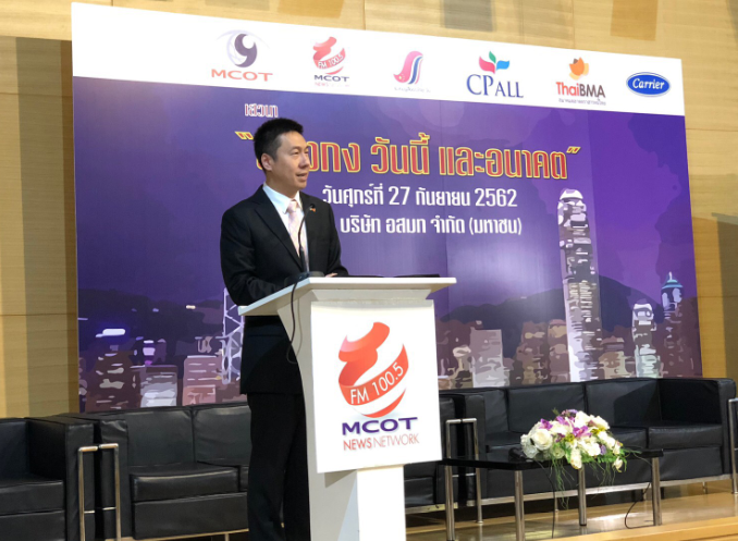 The minister counsellor delivered a special speech at MCOT Pcl. during a seminar on the future of the Hong Kong Special Administrative Region, jointly organized by FM 100.5 and the Thai-China Journalists Association for interested persons and businesspeople to learn more about in-depth information on the Hong Kong situation after the protest erupted four months ago, calling for withdrawal of the highly controversial extradition bill and escalated into violence.