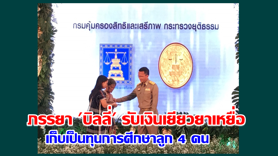 ก.ยุติธรรม 30 ก.ย.-‘มึนอ’ ภรรยาบิลลี่ รับเงินเยียวยา 1.4 แสนบาท เก็บเป็นทุนการศึกษาลูก 4 คน ด้านกรมคุ้มครองสิทธิฯ ได้งบฯ ปี 63 ช่วยเหลือเหยื่อในคดีอาญาเพิ่มเป็น 450 ล้านบาท หากไม่พอของบกลางเพิ่มได้อีก