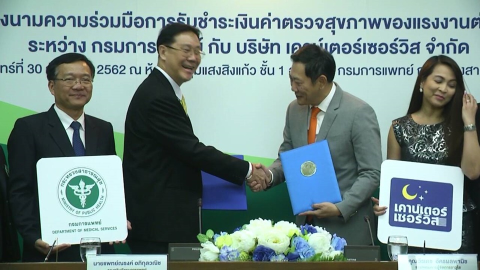 นพ.ณรงค์ อภิกุลวณิช รองอธิบดีกรมการแพทย์ เปิดเผยภายหลังพิธีลงนามความร่วมมือการรับชำระเงินค่าตรวจสุขภาพและประกันสุขภาพของแรงงานต่างด้าว ระหว่าง กรมการแพทย์ กับ บริษัท เคาน์เตอร์เซอร์วิส จำกัด ว่า กรมการแพทย์ได้ดำเนินการตามมติคณะรัฐมนตรี เมื่อวันที่ 20 สิงหาคม 2562 ที่ได้เห็นชอบให้แรงงานต่างด้าว สัญชาติกัมพูชา ลาว เมียนมา กลุ่มที่ใบอนุญาตทำงาน (Work Permit) และการอนุญาตให้อยู่ในราชอาณาจักรยังไม่หมดอายุ (ไม่รวมกลุ่มที่นำเข้าตามระบบ MOU) ไปยื่นขออนุญาตเพื่ออยู่ในราชอาณาจักรเป็นการชั่วคราว และทำงานต่อไปได้ สามารถดำเนินการในลักษณะนำเข้าตาม MOU โดยไม่ต้องเดินทางออกไปนอกราชอาณาจักร