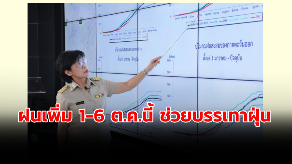 สำนักข่าวไทย 1 ต.ค.-รองอธิบดีกรมอุตุนิยมวิทยา เผยช่วงนี้จนถึง 6 ต.ค. ตอนบนของประเทศไทย รวมถึงกรุงเทพฯ จะมีฝนเพิ่ม ช่วยบรรเทาปัญหาฝุ่นควันละออง