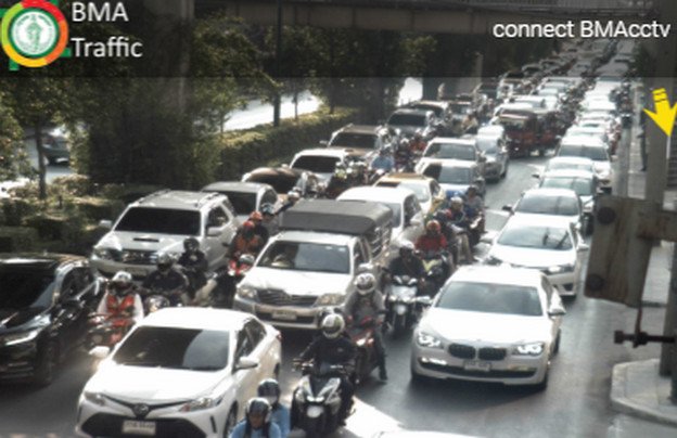 ถนนพระราม 4 ทั้งขาเข้า และขาออก ผ่านใต้ทางด่วนพระราม 4 รถมาก เคลื่อนตัวได้ช้า