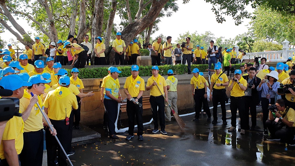 โดยนายกรัฐมนตรีและคณะรัฐมนตรีได้ร่วมกันทำความสะอาด เก็บขยะบริเวณสวนสันติชัยปราการและท่าพระอาทิตย์ ซึ่งนายกรัฐมนตรีได้ใช้สายฉีดน้ำแรงดันสูงฉีดน้ำทำความสะอาดบริเวณริมเขื่อน ก่อนที่จะลงเรือที่ท่าพระอาทิตย์เพื่อสำรวจความเรียบร้อย ในการพัฒนาภูมิทัศน์ริมฝั่งแม่น้ำเจ้าพระยาถวายพระราชกุศล เนื่องในวันสำคัญ 3 โอกาส