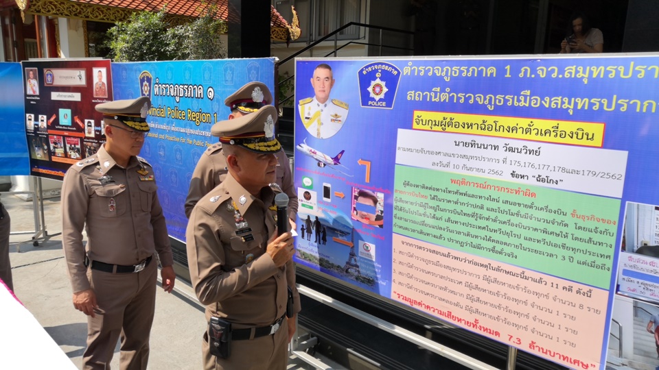 กรุงเทพฯ 2 ต.ค.- รวบอดีตผู้สมัคร สส.อ้างเป็นผู้แทนจำหน่ายตั๋วเครื่องบิน บ.การบินไทย ผ่านแอบพลิเคชั่นไลน์ เมื่อถึงกำหนดวันเดินทางกลับไม่มีตั๋ว มีผู้เสียหายหลายรายตกเป็นเหยื่อ พบประวัติก่อเหตุมาแล้วหลายพื้นที่