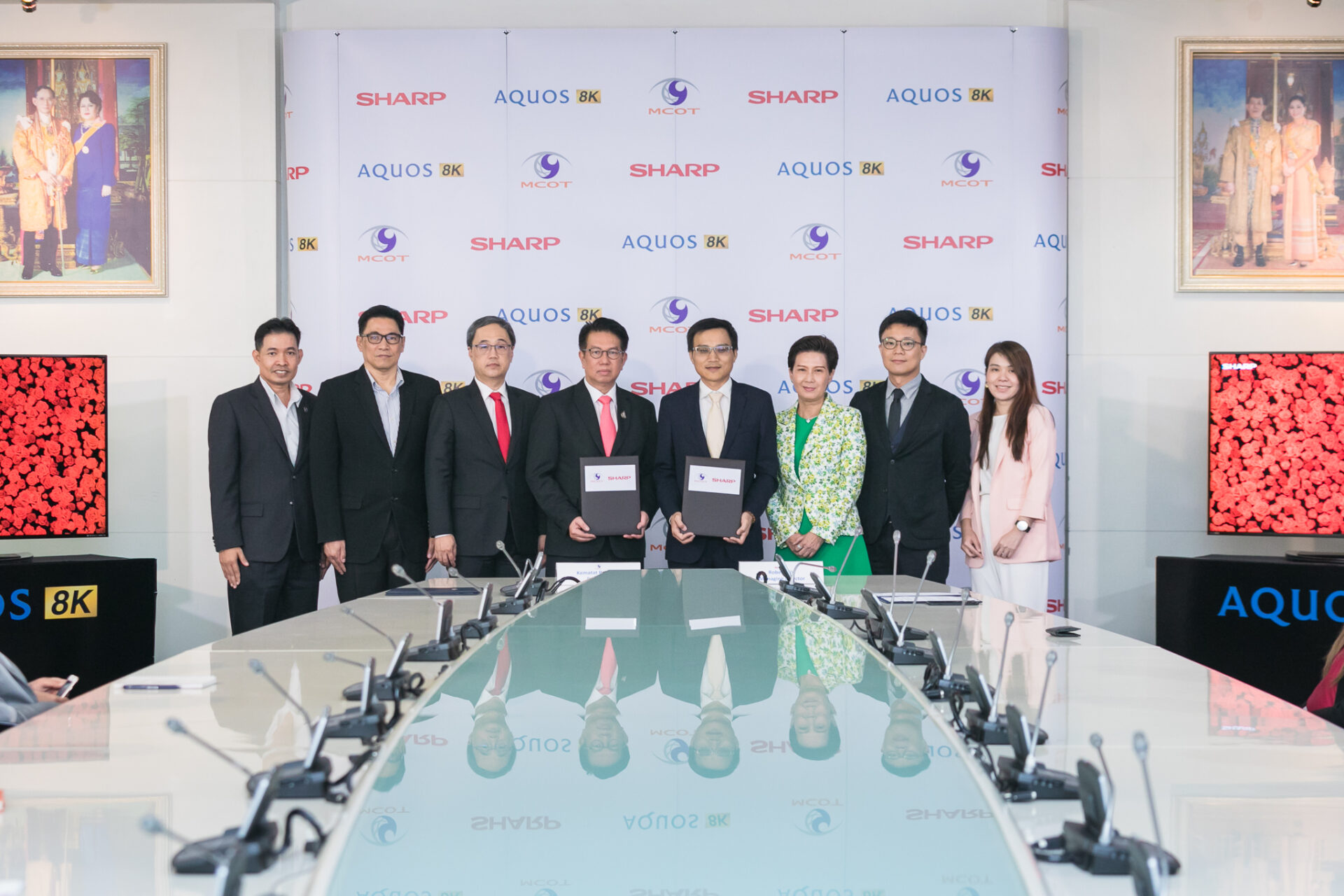 นายเขมทัตต์ พลเดช กรรมการผู้อำนวยการใหญ่ บริษัท อสมท จำกัด (มหาชน) และ นายโรเบิร์ต อู๋ กรรมการผู้จัดการ บริษัท ชาร์ป ไทย จำกัด และ ชาร์ป มาเลเซีย ( Mr. Robert Wu Managing Director Sharp Thai Co.,Ltd.) ร่วมลงนามบันทึกข้อตกลงความร่วมมือ (MOU) ระหว่าง บริษัท อสมท จำกัด (มหาชน) และ บริษัท ชาร์ป ไทย จำกัด ในความร่วมมือด้านการผลิตสื่อโทรทัศน์ด้วยเทคโนโลยี 8K โดยมี นายผาติยุทธ ใจสว่าง รักษาการผู้ช่วยกรรมการผู้อำนวยการใหญ่ สำนักโทรทัศน์ และนางสาวหทัยชล ติวะสุระเดช ผู้จัดการทั่วไป สายงานบริหารองค์กร ร่วมเป็นสักขีพยาน