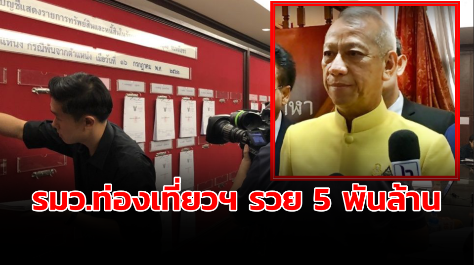 สำนักงาน ป.ป.ช. 9 ต.ค.- ป.ป.ช.เปิดบัญชีทรัพย์สิน 6 รัฐมนตรี “พิพัฒน์” รัฐมนตรีท่องเที่ยวฯ รวยสุด 5,000 ล้านบาท ด้าน ”กนกวรรณ” เศรษฐีที่ดินปราจีนบุรี