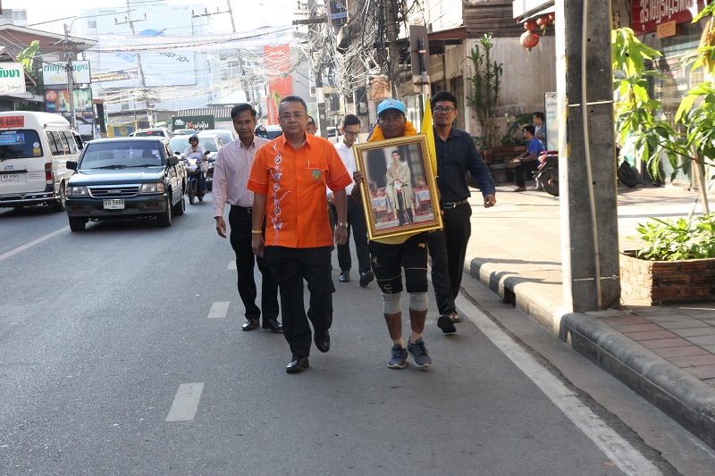 สุราษฎร์ธานี 10 ต.ค.- ผู้ว่าฯ สุราษฎร์ฯ ส่งกำลังใจให้ “พงษ์ศักดิ์” อายุ 47 ปี ชาวอำเภอไชยา ออกเดินเท้าทางไกลครั้งที่ 5 เข้ากรุงเทพฯ 800 กม. 14 วัน เพื่อร่วมเฝ้าฯ รับเสด็จ การเสด็จพระราชดำเนินเลียบพระนครโดยขบวนพยุหยาตราทางชลมารค 24 ต.ค.62 ในโอกาสพระราชพิธีบรมราชาภิเษก
