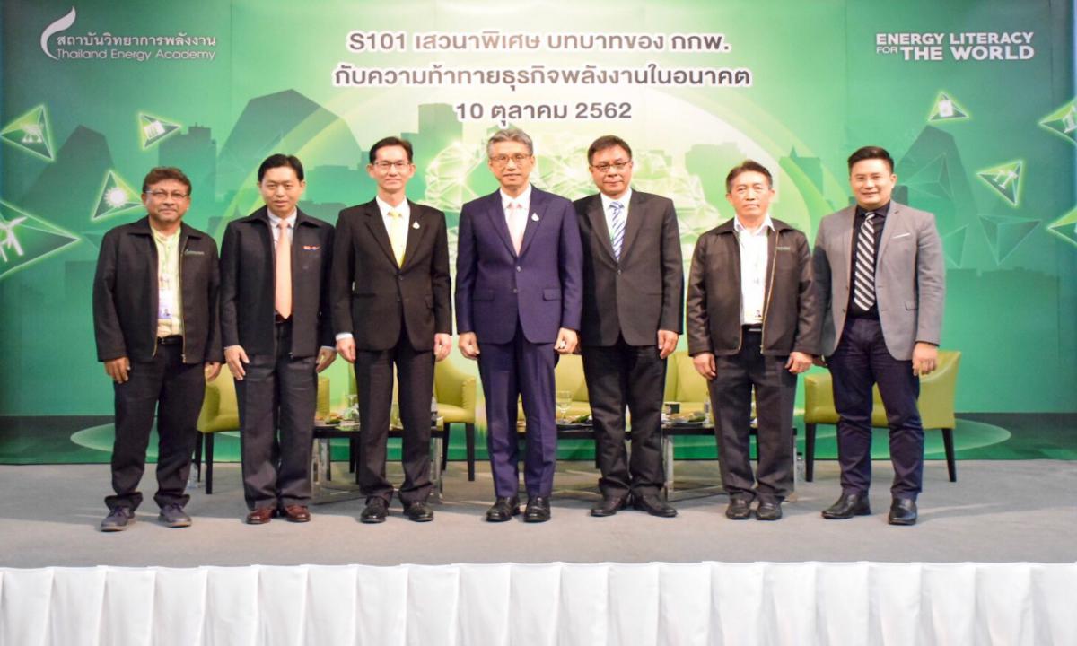 เมื่อวันที่ 10 ตุลาคม 2562 นายกีรพัฒน์ เจียมเศรษฐ์ ผู้ว่าการการไฟฟ้านครหลวง (MEA) ร่วมการเสวนาพิเศษ ในหัวข้อ “บทบาทของ กกพ. กับความท้าทายธุรกิจพลังงานในอนาคต” ร่วมกับผู้บริหารและผู้ทรงคุณวุฒิ ได้แก่ นายเสมอใจ ศุขสุเมฆ ประธานกรรมการกำกับกิจการพลังงาน (กกพ.) นายประเทศ ศรีชมภู ผู้ช่วยเลขาธิการ กกพ. ดร.ประสิทธิ์ สิริทิพย์รัศมี ผู้ช่วยเลขาธิการ กกพ. และ ดร.มนตรี ชาลีเครือ นายกองค์การบริหารจังหวัด จ.ชัยภูมิ โดย ผู้ว่าการ MEA ได้นำเสนอในประเด็น การปรับตัวของอุตสาหกรรมไฟฟ้า และนวัตกรรมทางด้านระบบจำหน่ายพลังไฟฟ้าของ MEA อาทิ ยานยนต์ไฟฟ้า (EV) และ ระบบการดูแลและควบคุมพลังงานในบ้าน (Home Energy Monitoring and Control System) เพื่อให้สอดรับกับ Disruptive Technology ตอบสนองต่อวิถีชีวิตเมืองมหานคร โดยการเสวนาพิเศษครั้งนี้ เป็นส่วนหนึ่งของกิจกรรมในหลักสูตรผู้บริหารระดับสูงด้านวิทยาการพลังงาน รุ่น 14 (วพน.14) ณ The Synergy Hall อาคาร C Energy Complex.-สำนักข่าวไทย