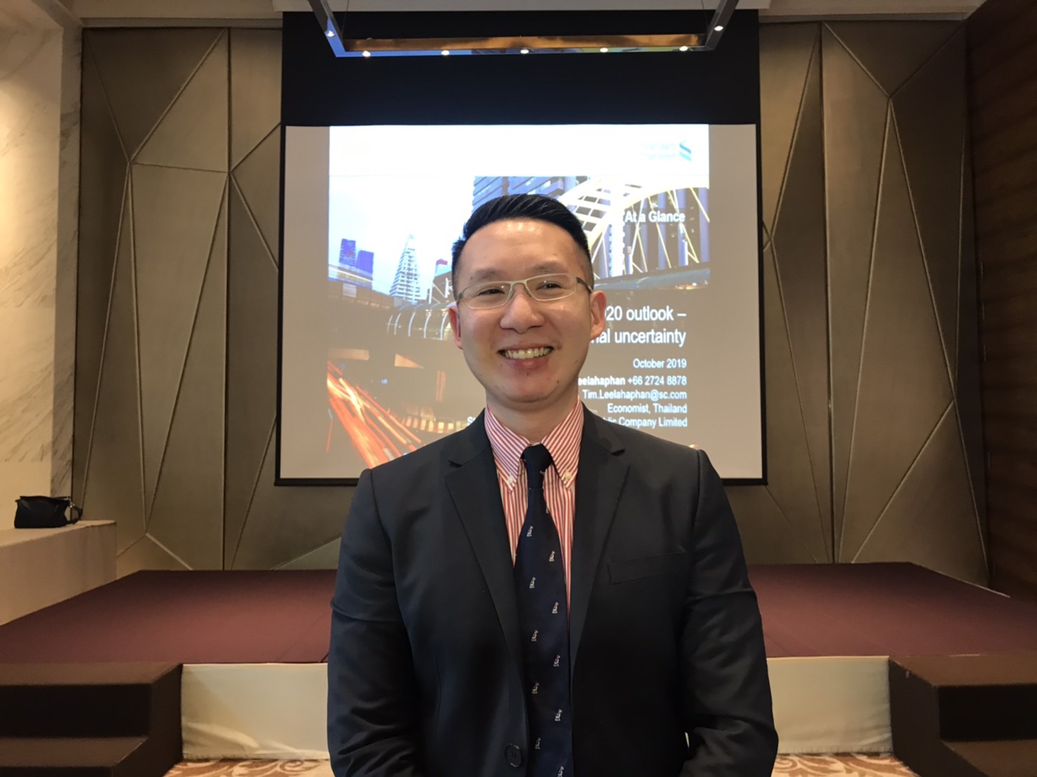นายทิม ลีฬหะพันธุ์ นักเศรษฐศาสตร์ ธนาคารสแตนดาร์ดชาร์เตอร์ด (ไทย) กล่าวว่า ธนาคารทำการสำรวจความคิดเห็นภาคธุรกิจขนาดใหญ่ ผู้จัดการกองทุน นักลงทุนรายใหญ่ จำนวน 100 คน ในช่วง 6 เดือนข้างหน้า พบว่าเศรษฐกิจไทยไม่สดใส นักลงทุนทำธุรกิจแบบระมัดระวัง เพราะกังวลสงครามการค้าสหรัฐ-จีน โดยครึ่งหนึ่งได้รับผลกระทบจากความขัดแย้งทางการค้า และอีกร้อยละ 30 คิดว่าจะได้รับผลกระทบเชิงลบในไม่ช้า ทำให้ไม่มั่นใจว่าประเทศไทยจะได้รับผลบวกจากการย้ายฐานการผลิตจากต่างประเทศมาไทย