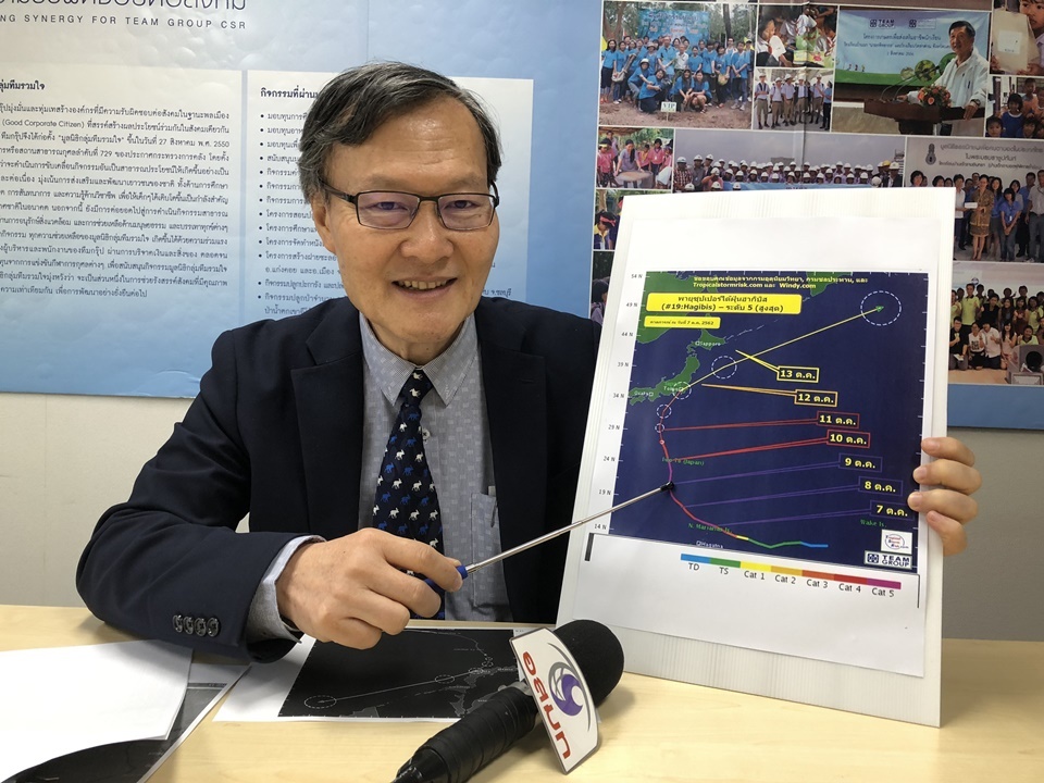 นายชวลิต จันทรรัตน์ ประธานเจ้าหน้าที่บริหาร บริษัททีมคอนซัลติ้ง เอนจิเนียริ่ง แอนด์ แมเนจเมนท์ จำกัด (มหาชน) หรือ TEAMG นักวิชาการด้านภัยพิบัติ กล่าวถึงพายุซูเปอร์ไต้ฝุ่นฮากีบิส ที่จะพัดเข้าประเทศญี่ปุ่น ในวันที่ 12 ตุลาคมนี้ ว่า ตนได้ติดตามความเคลื่อนไหวของพายุลูกนี้ ตั้งแต่วันที่ 7 ตุลาคม โดยในช่วงแรกยังเป็นดีเปรสชัน ต่อมาได้สะสมพลังงานในทะเลจนกลายเป็นไต้ฝุ่น ที่มีความเร็ว แรง ระดับ 5 ในวันที่ 9 และ 10 ตุลาคมที่ผ่านมา แต่เมื่อเจอกับ ลมหนาวจากจีน ทำให้อ่อนกำลังลง เหลือเพียงพายุไต้ฝุ่น ระดับ 3 – 4 เท่านั้น