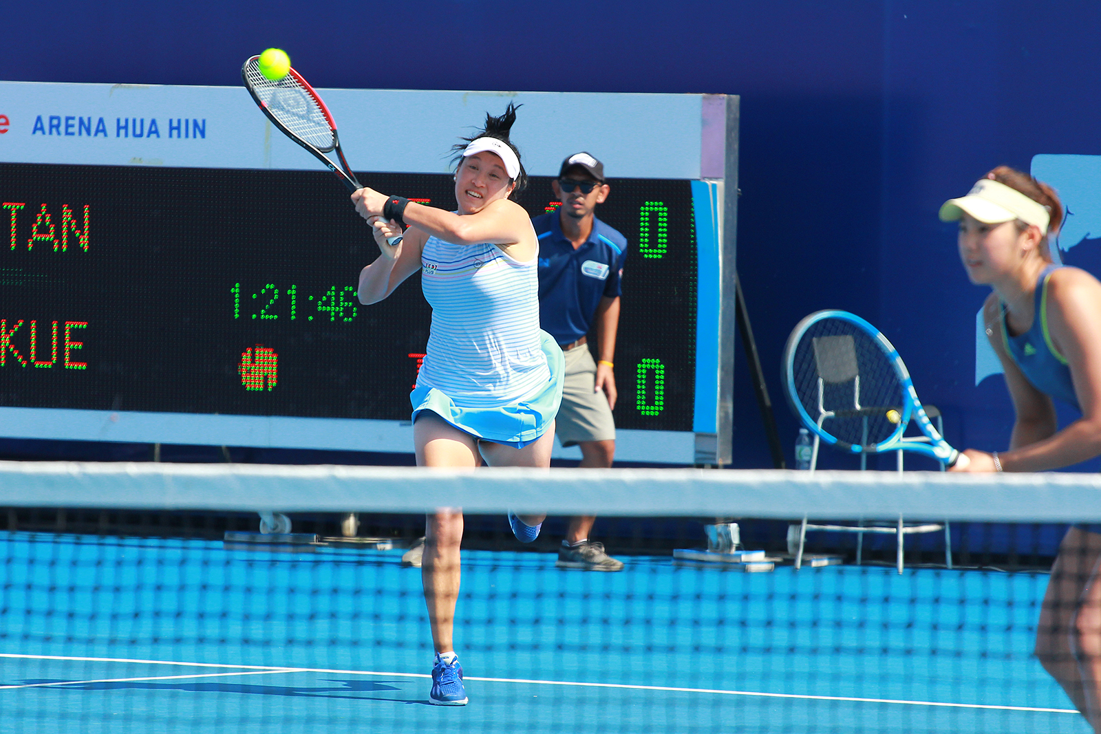 กับ คัง เจีย-ฉี จากจีน หวดเอาชนะ คู่ของ กมลวรรณ บัวแย้ม กับ ศุภาพิชญ์ เกือรัมย์