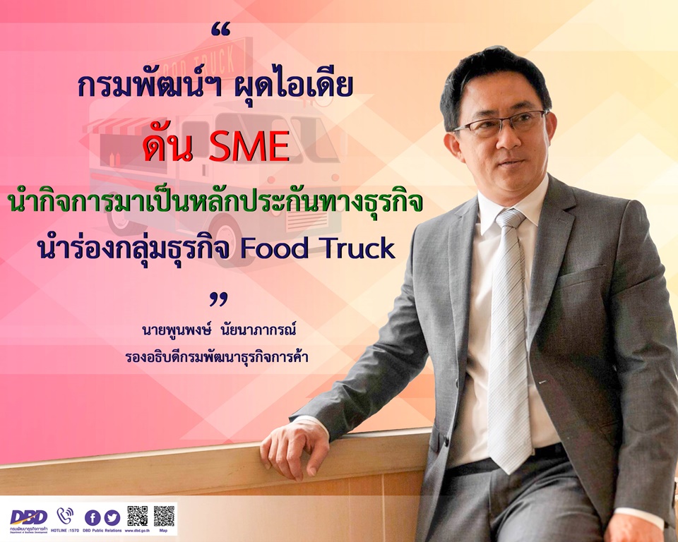 สำหรับฟู้ดทรัคเป็นร้านอาหารเคลื่อนที่ที่กำลังเป็นที่นิยมของนักลงทุนรุ่นใหม่ เนื่องจากใช้เงินลงทุนไม่มาก ประมาณ 450,000 – 500,000 บาท ก็สามารถสร้างธุรกิจเป็นของตนเองได้แล้ว นอกจากนี้ ยังมีการบริหารจัดการที่ง่าย สะดวก ใช้พนักงานไม่มากก็ดำเนินกิจการได้ อีกทั้งยังสามารถเคลื่อนย้ายร้านไปหากลุ่มลูกค้าได้ตรงจุดและตรงกลุ่มเป้าหมาย กรมฯ จึงเล็งเห็นว่าธุรกิจรูปแบบนี้จะตอบโจทย์ลูกค้าได้เป็นอย่างดี ประกอบกับแนวคิดของผู้ประกอบการรุ่นใหม่ที่มีไอเดียแปลกใหม่ในการขายสินค้าจะทำให้ธุรกิจเติบโตและขยายตัวได้รวดเร็วขึ้น หากได้รับการสนับสนุนและเปิดโอกาสเข้าถึงแหล่งเงินทุนจะทำให้ธุรกิจเหล่านี้เป็นพลังสำคัญในการช่วยซ่อม สร้าง และเสริมความแข็งแกร่งให้ระบบเศรษฐกิจของไทยได้ไม่ยาก