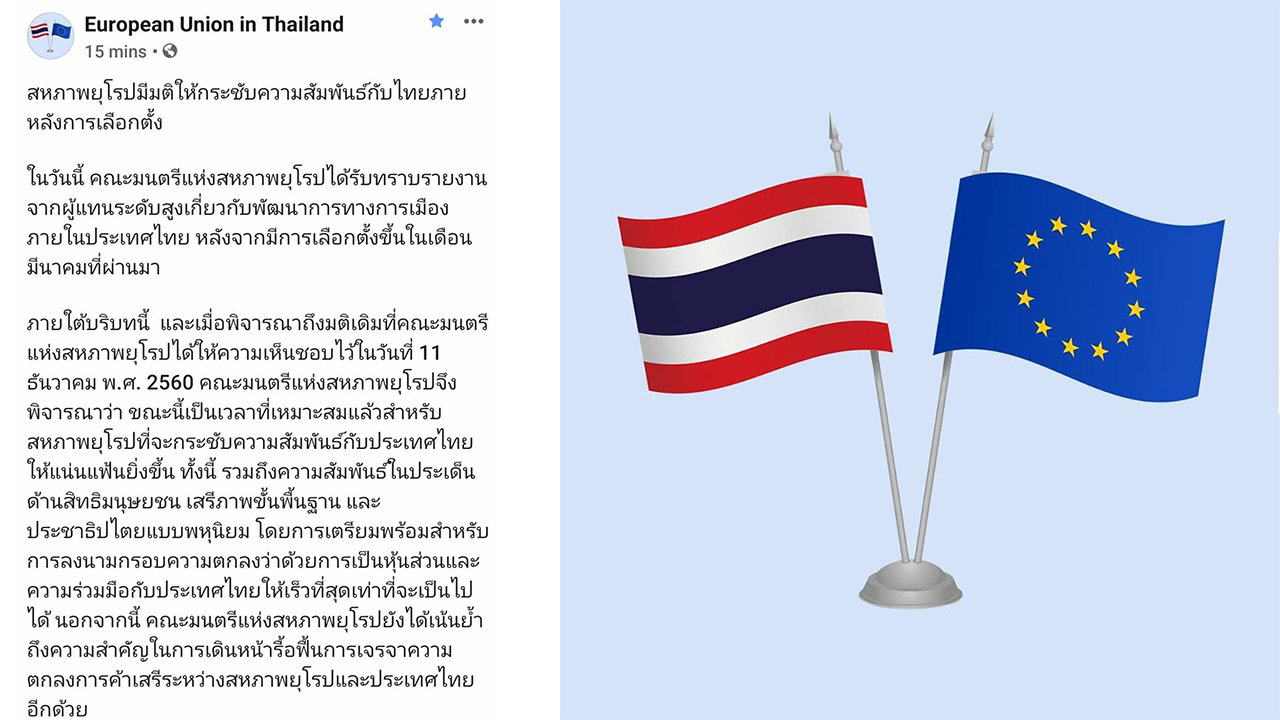 ภายใต้บริบทนี้ และเมื่อพิจารณาถึงมติเดิมที่คณะมนตรีแห่งสหภาพยุโรปได้ให้ความเห็นชอบไว้ในวันที่ 11 ธันวาคม พ.ศ. 2560 คณะมนตรีแห่งสหภาพยุโรปจึงพิจารณาว่า ขณะนี้เป็นเวลาที่เหมาะสมแล้วสำหรับสหภาพยุโรปที่จะกระชับความสัมพันธ์กับประเทศไทยให้แน่นแฟ้นยิ่งขึ้น ทั้งนี้ รวมถึงความสัมพันธ์ในประเด็นด้านสิทธิมนุษยชน เสรีภาพขั้นพื้นฐาน และประชาธิปไตยแบบพหุนิยม โดยการเตรียมพร้อมสำหรับการลงนามกรอบความตกลงว่าด้วยการเป็นหุ้นส่วนและความร่วมมือกับประเทศไทยให้เร็วที่สุดเท่าที่จะเป็นไปได้ นอกจากนี้ คณะมนตรีแห่งสหภาพยุโรปยังได้เน้นย้ำถึงความสำคัญในการเดินหน้ารื้อฟื้นการเจรจาความตกลงการค้าเสรีระหว่างสหภาพยุโรปและประเทศไทยอีกด้วย.-สำนักข่าวไทย