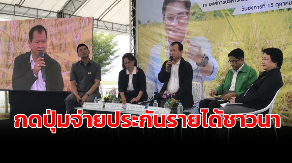 อยุธยา 15 ต.ค. – รัฐมนตรีพาณิชย์กดปุ่มจ่ายเงินประกันรายได้ชาวนาผู้ปลูกข้าวเริ่มตั้งแต่วันนี้เป็นต้นไป ประเดิมข้าวเปลือก 2 ชนิดก่อน ส่วนข้าว 3 ประเภทราคาตลาดยังสูงกว่าประกัน