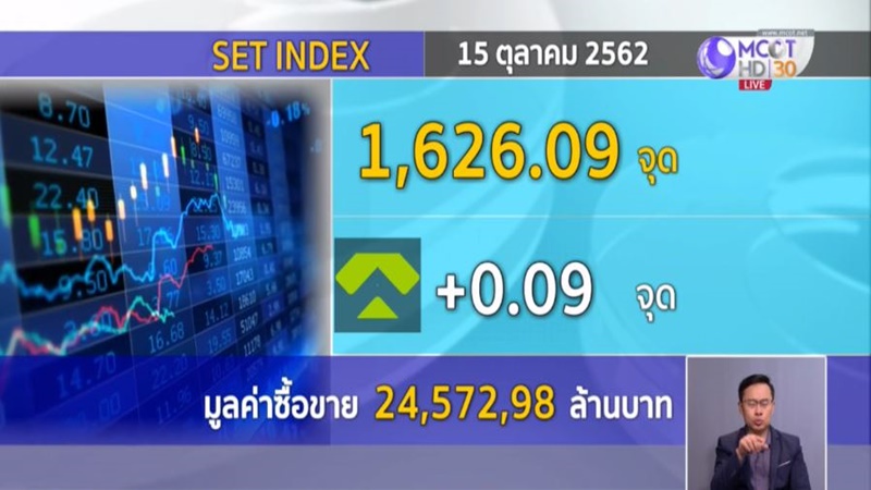 กทม. 15 ต.ค.-หุ้นไทยเช้านี้ปรับขึ้นเล็กน้อย ตลาดเริ่มผ่อนคลายการเจรจาการค้าระหว่างสหรัฐกับจีน โดยมีรายงานว่าสหรัฐจะเลื่อนเก็บภาษีต่อสินค้านำเข้าจากจีน วงเงิน 250,000 ล้านดอลลาร์สหรัฐ สู่ระดับ 30% นั้นออกไปก่อน ส่วนในบ้านเราต้องติดตามการพิจารณาร่างงบประมาณรายจ่ายประจำปี 2563 ในวันที่ 17-19 ต.ค.นี้ โดยดัชนีช่วงเที่ยงปิดบวก 0.09 จุด ที่ระดับ 1,626.09 จุด มูลค่าการซื้อขาย 24,572.98 ล้านบาท.-สำนักข่าวไทย