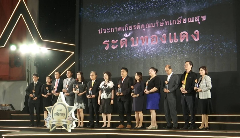 สำหรับการมอบรางวัลประกาศเกียรติคุณบริษัทเกษียณสุข ปี 2562 มีนายจ้างที่รับรางวัล 77 ราย แบ่งเป็นรางวัลระดับทอง 28 ราย ระดับเงิน 37 ราย และ ระดับทองแดง 12 ราย ซึ่งมีสมาชิก PVD รวมกัน 160,000 คน จากนายจ้างที่สมัครเข้าร่วมโครงการ 181 ราย ครอบคลุมสมาชิกกว่า 300,000 คน ในจำนวนนี้มีนายจ้าง 64 ราย เพิ่มแผนการลงทุนที่หลากหลายให้เหมาะกับลูกจ้าง และมีเงินสมทบให้ลูกจ้าง ตั้งแต่ร้อยละ 5 ขึ้นไป ขณะที่ลูกจ้างมีความกระตือรือร้นที่จะเพิ่มเงินสะสม โดยมีนายจ้าง 28 ราย ที่สมาชิก PVD มากกว่าครึ่งส่งเงินสะสมเงินเข้ากองทุนมากกว่าร้อยละ 10. – สำนักข่าวไทย