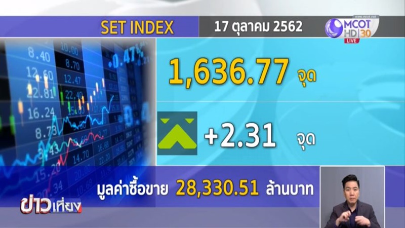 ตลาดหุ้นไทยช่วงเที่ยงปิด +2.31 จุด