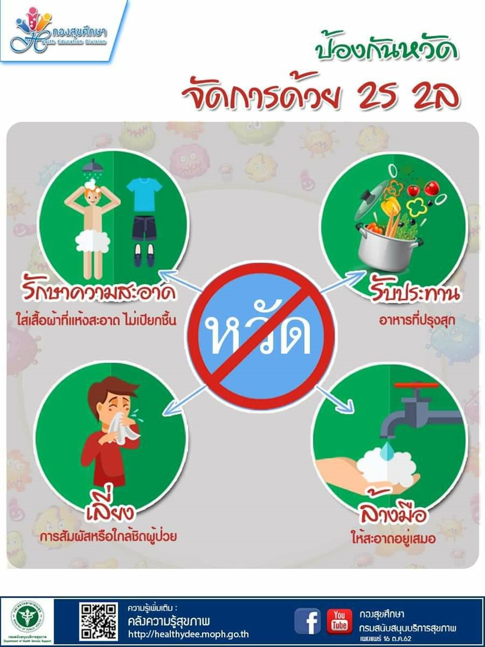 กรมสบส.18 ต.ค.- กรม สบส.แนะรับมือช่วงปลายฝนต้นหนาว ระวังโรคทางเดินหายใจ เช่น โรคไข้หวัด โรคปอดบวม ป้องกันการเกิดโรคด้วยสุขบัญญัติ 2 ร 2 ล รักษาความสะอาดร่างกายของใช้ให้สะอาด รับประทานอาหารสุกใหม่ เลี่ยงสัมผัสกับผู้ป่วย และล้างมือให้สะอาด